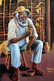 Era yo un muchacho de ocho años, que dormía en la casa acompañando al abuelo. Muchas veces me dormía sentado en el pequeño banco, pegado a su cama muy cerca del suelo, él sacaba su negra mano y acariciaba mi pelo.